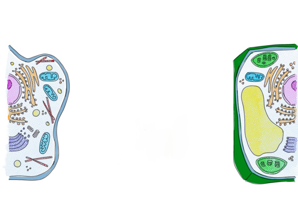 Para comparar ambas células (animal y vegetal) destacando sus similitudes y sus diferencias, se puede utilizar este foldable. La idea no es mía, la encontré hace muchos años en la red y siento no acordarme dónde. Yo la he dibujado con el ipad.