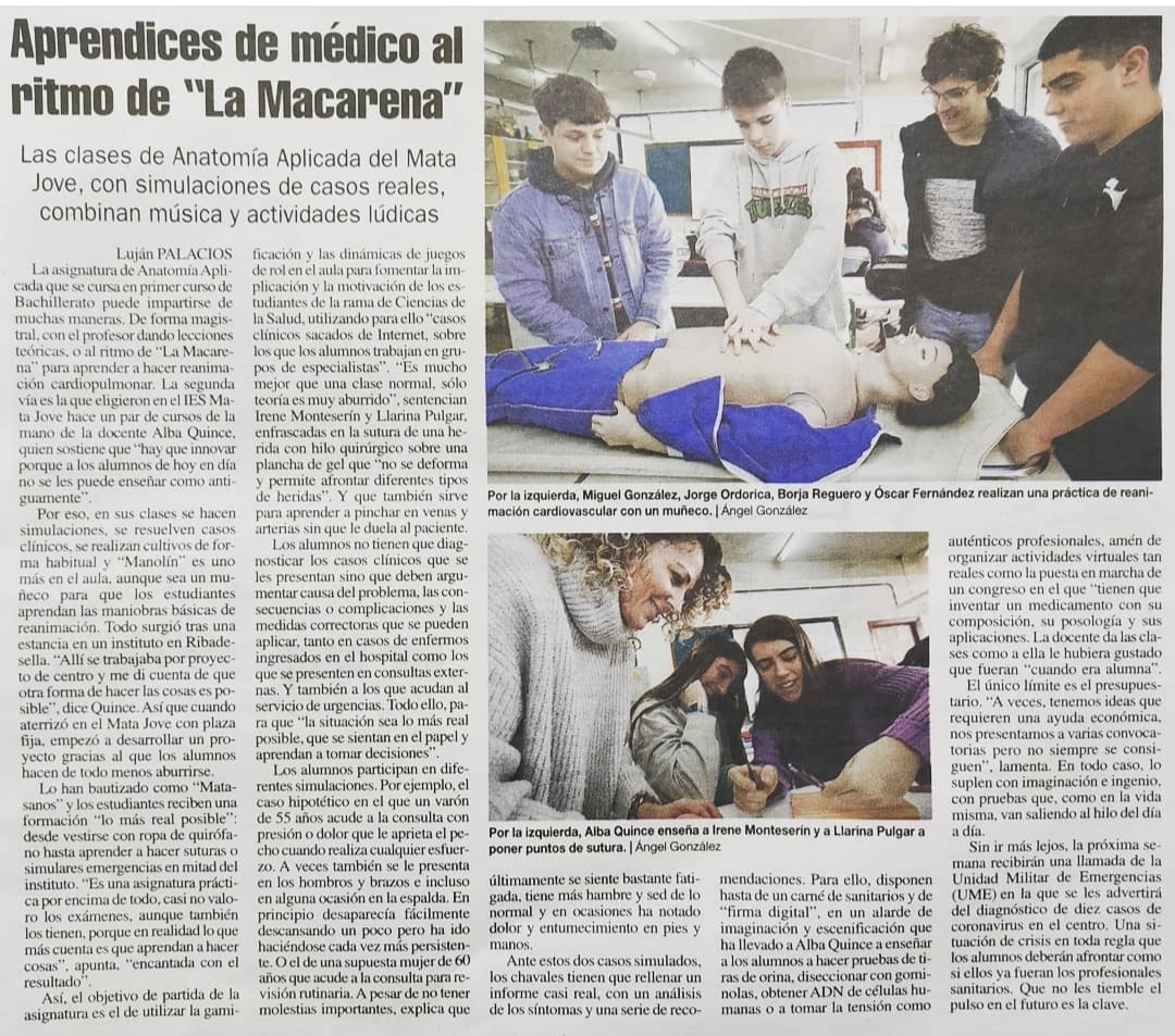 A lo largo de estos años este proyecto me ha permitido participar en Jornadas educativas como ponente, ha salido en cabecera en la web Educastur y en prensa digital y escrita. Y todo se lo debo a ellos, MIS ALUMNOS.